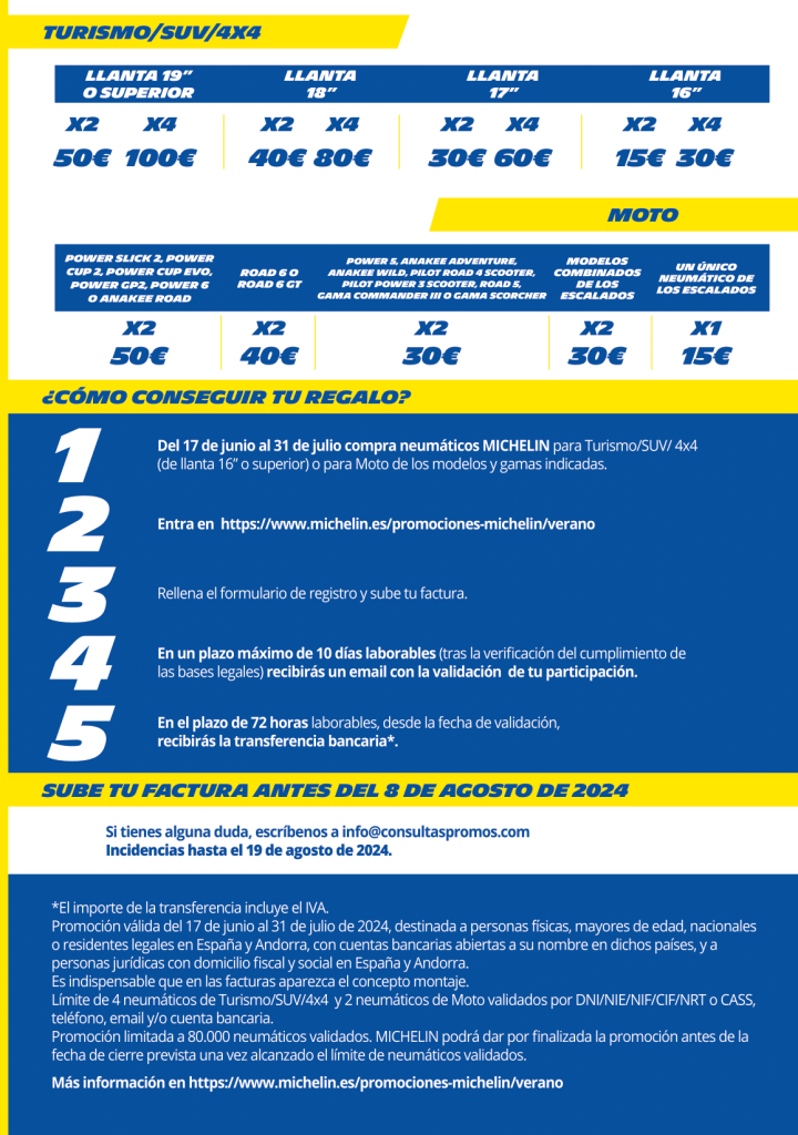 Del 21 octubre al 30 noviembre por la compra de 2 o 4 Michelín para furgonetas consigue 30 o 60€ para la compra de combustible.